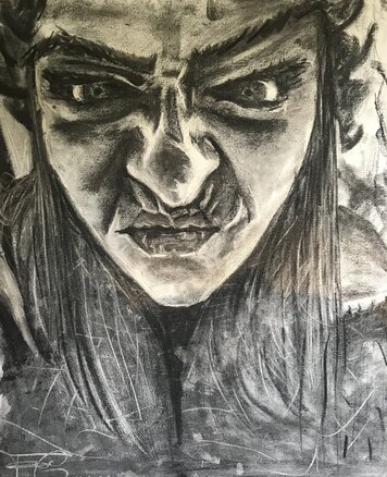 Matite carbone, gomme e fissativi sono disponibili per l'uso.